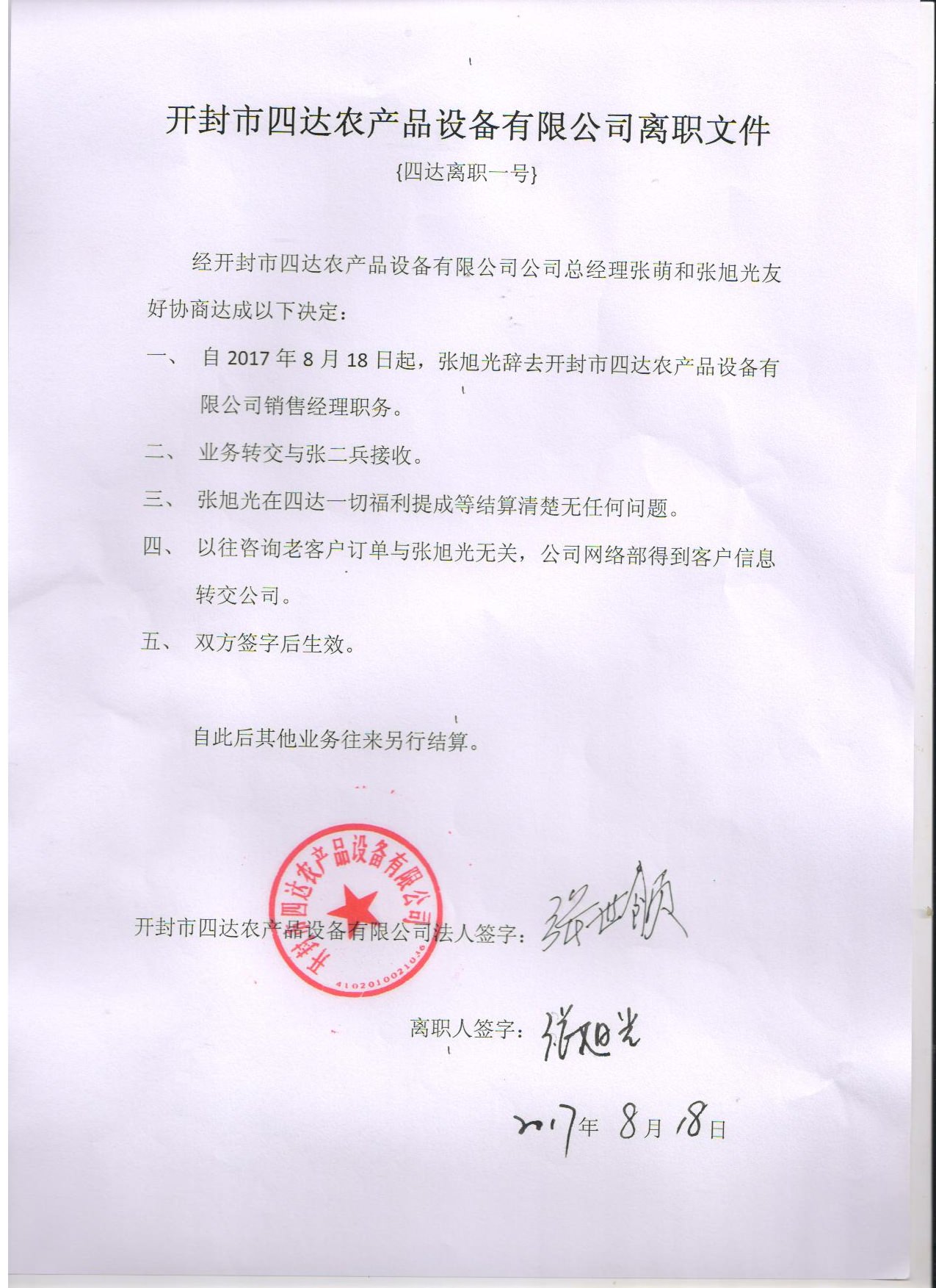張旭光離職聲明